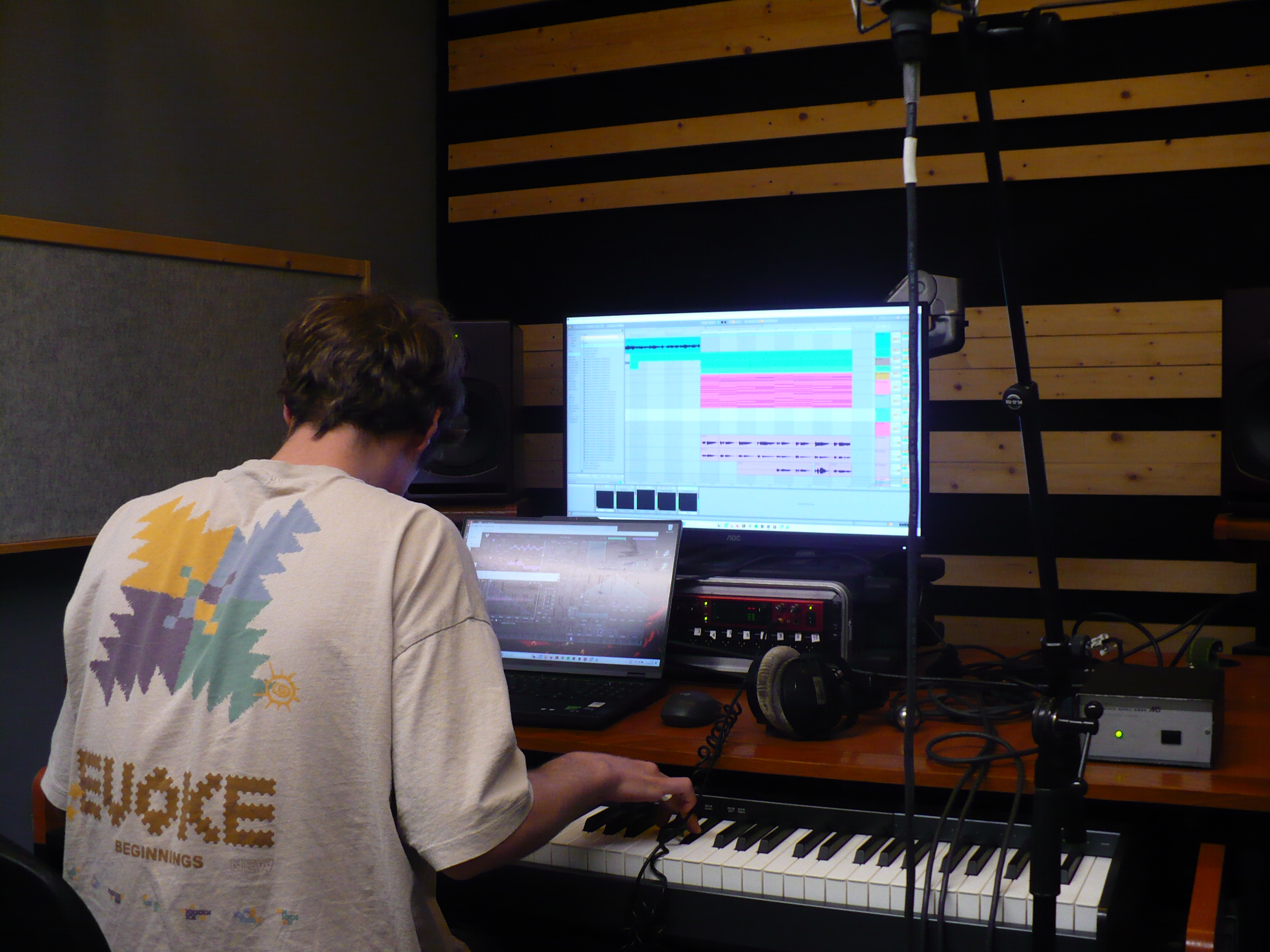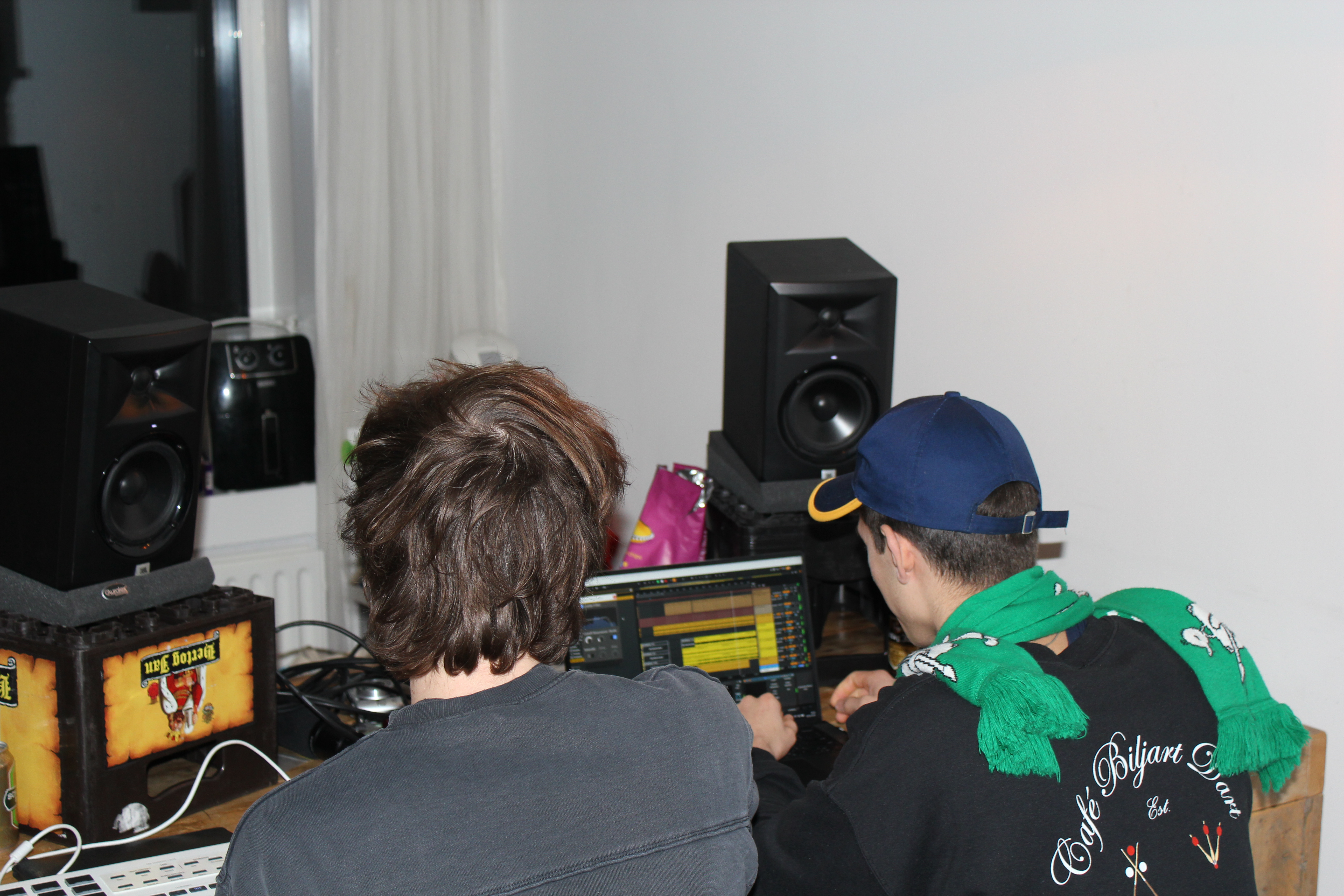 I had fond, semi-nostalgic memories taunting me, memories of All Nighter, FORM's flagship event1, and then specifically the times my friends and I made songs for volumes 5 and 6 (a loving embrace to Marcus and Lewis). I had a vague idea of wanting to host a similar community "jam" with friends I had made while at the HKU. After sparring with Rik for a while we got the brilliant (and somewhat pompous) idea of chaining studio reservations, to secure a studio for an entire day (09:00-21:00). We gathered some enthousiasts (I think it was Jasper, Jesse (Jacques2) Morris, Maarten, Quinten, Joris and Erdem at first) and made our way to the studio.